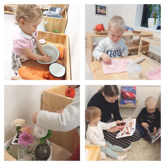 - Монтессори сессия 2 часа для возраста 3-4 года и 3 часа для возраста 5-6 лет.4 разовое питание, (завтрак, витаминный перекус, обед, полдник)