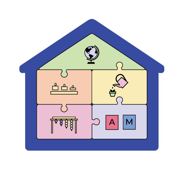 Среда разделена на пять основных зон, первая зона в которую попадает ребенок - это Зона упражнений практической жизни. Потом Зона сенсорного развития, после этого предметом исследования становятся Зона Языка, Зона Математики и Зона Космоса, познакомимся с этими зонами поподробнее.